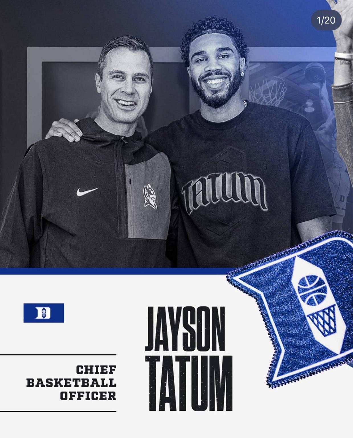北京时间2025年10月8日,杜克大学官方宣布,凯尔特人球星杰森-塔图姆被任命为杜克大学篮球运营总监,他将担任主教练乔恩-谢耶的特别顾问。